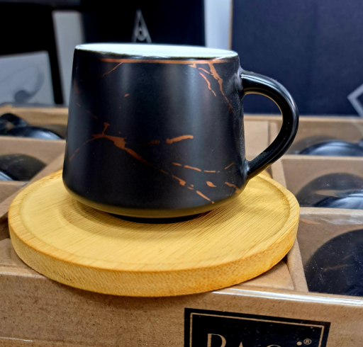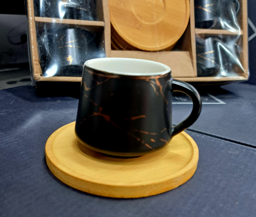 قهوه خوری طرح ماربل مشکی طلایی نعلبکی بامبو
