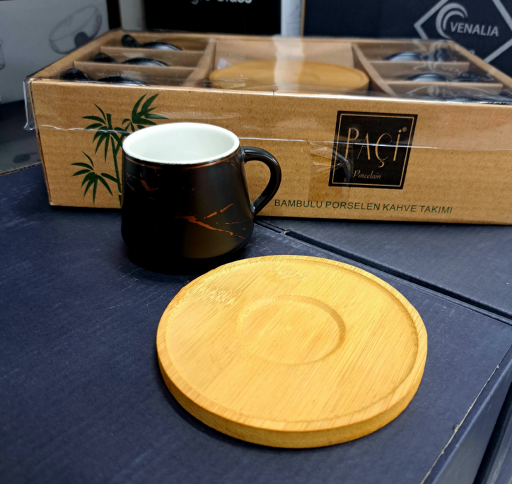 فنجان نعلبکی قهوه خوری طرح ماربل بامبو پاچی Paçi ترکیه ۶ نفره ۱۲ پارچه حجم 105cc