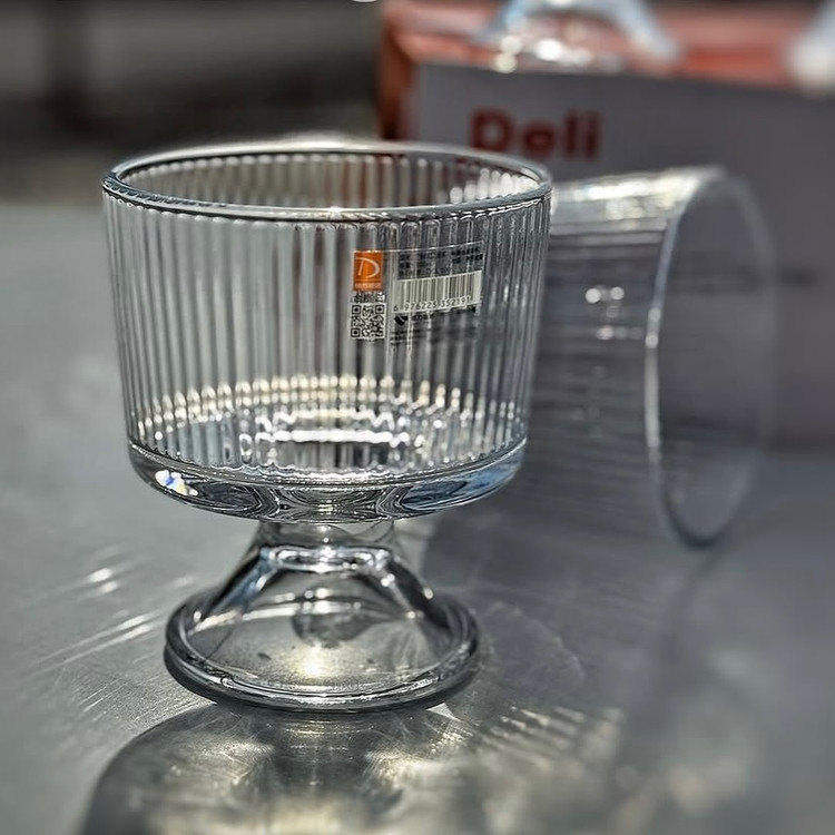 بستنی خوری و دسر خوری پایه دار مدل شیار دار دلی گلس Delliglass